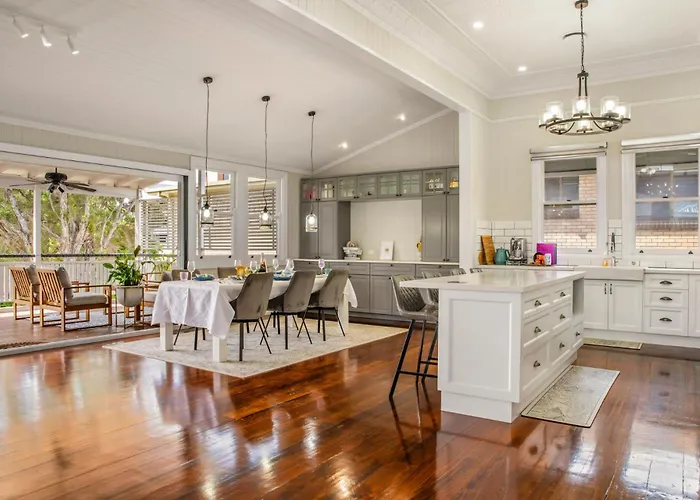 Si te alojas en esta villa, estarás a unos 2 km del Jardín Botánico de la Ciudad de Brisbane y a unos 2,1 km del South Bank Parklands. Entre los lugares educativos cercanos se encuentran la Universidad de Queensland-St Lucia, a unos 30 minutos a pie. La villa 5Br Queenslander - Walk To The Gabba - Sleeps 10 está muy cerca de Nazareth Lutheran Church.